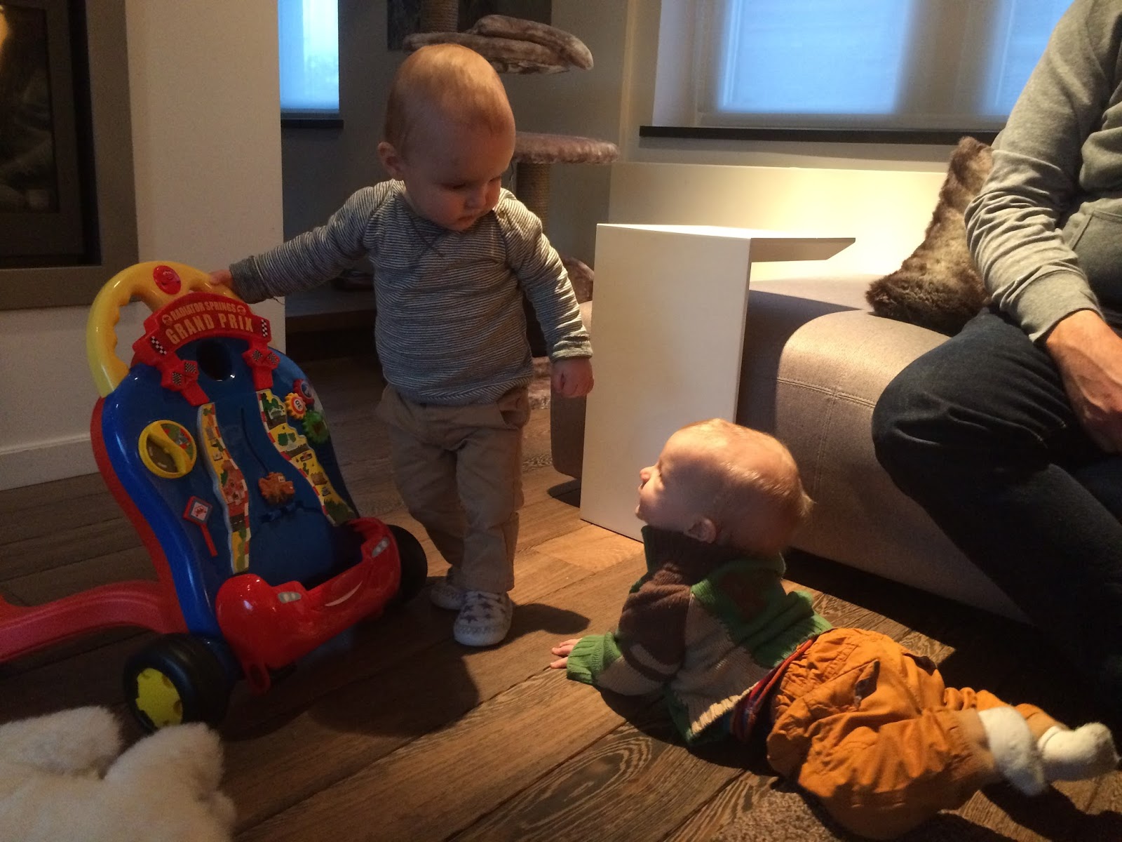 Previous weekend we made a blitz visit to my sister-in-law where Beertje could meet his slightly older cousin. Both boys observed each other with great interest and studied each other's faces as if they recognised the family resemblance. Then they could test and show off each other's toys.