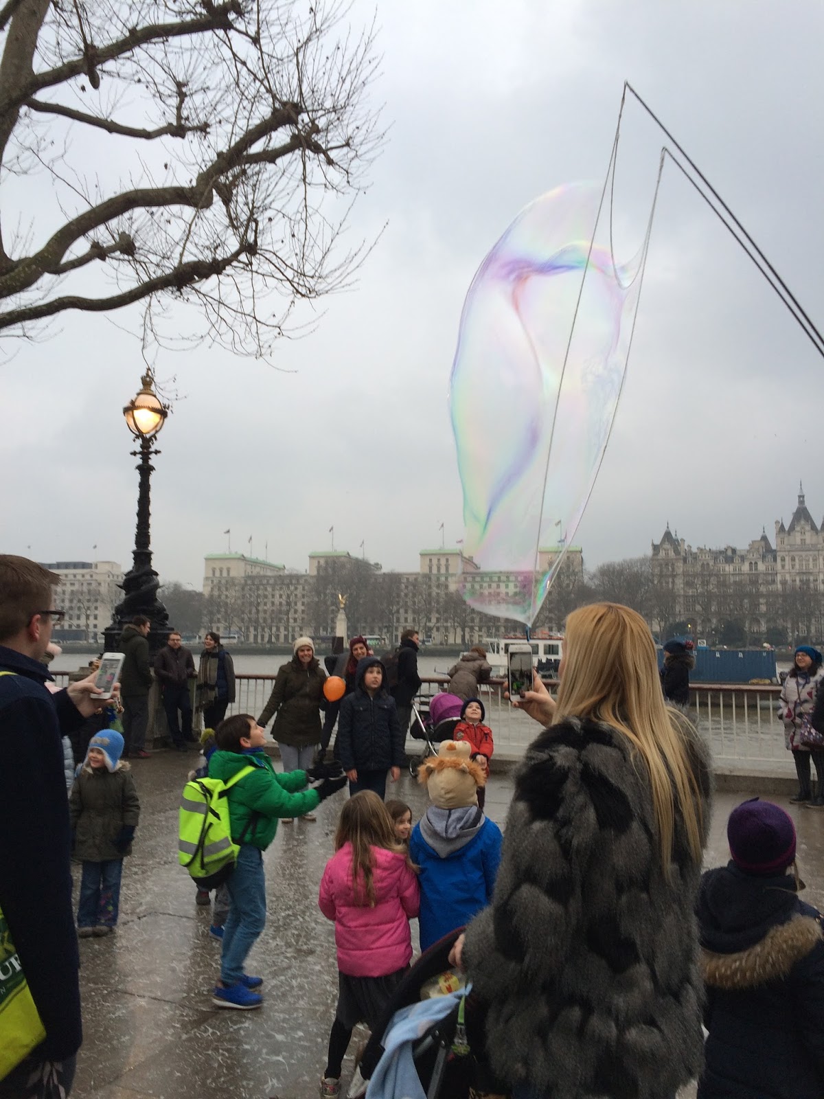 On Saturday we crossed Westminster (along the 'Tower from Cars') and the royal parks where we searched succesfully for squirrels, up to see Buckingham palace (the palace from the queen from Cars). Although not visible on the pictures, it was snowing big flakes of snow but it melted on the ground. Kabouter tried to touch, taste the snow and wondered why his gloves got so wet?