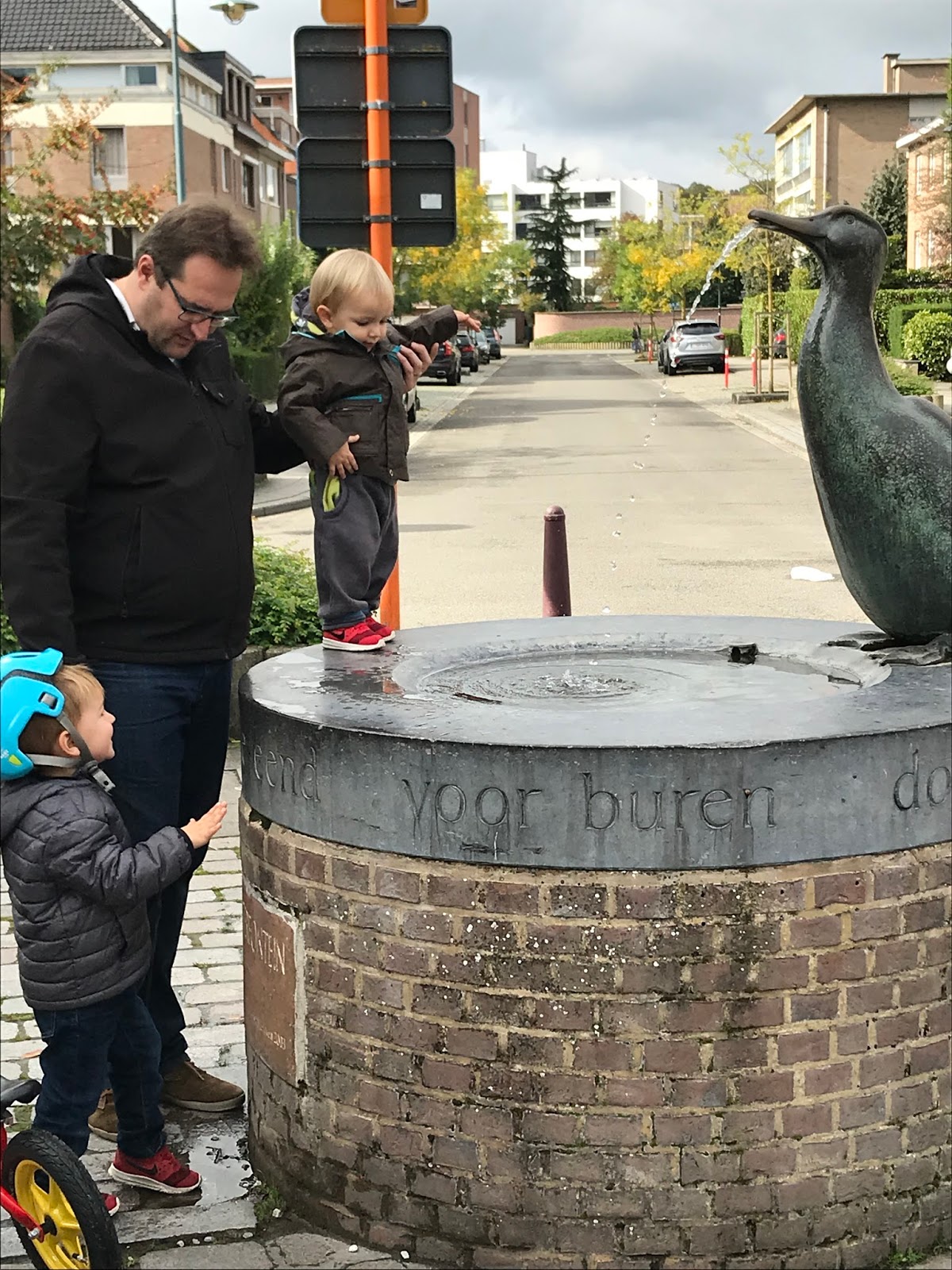 Kabouter wanted to show me the Duck water fountain in the Redingenhof so I played my role to be really surprised when he tapped the hidden button in the street to make the duck spray water.