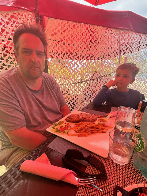 The rest of the cuisine consists of a lot of grilled chicken. (chickens run free around the country everywhere by the way) or grilled fish (including fresh water shrimp, octopus, ...). These come with Caribbean herbs eg the Colombo mix (chicken Colombo is on each menu) and are accompanied by rice, sweet potatoes (fried or mashed potatoes), mashed potatoes with green banana and lentils. The potato fries are less crispy than we are used too but deliciously herbed.
